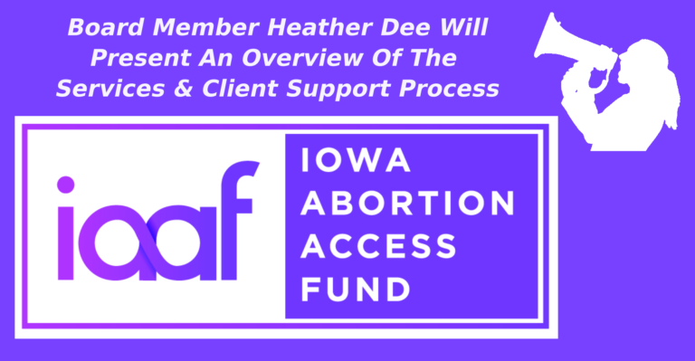 On September 19, 2024, we learned about IAAF( Iowa Abortion Access Fund) with Board member Heather Dee as she presented an overview of the services and client support process. She touched on the most recent legal landscape in Iowa, and resources currently available. She also provided information regarding the various methods on how people can support this fund to aid pregnant people in Iowa.