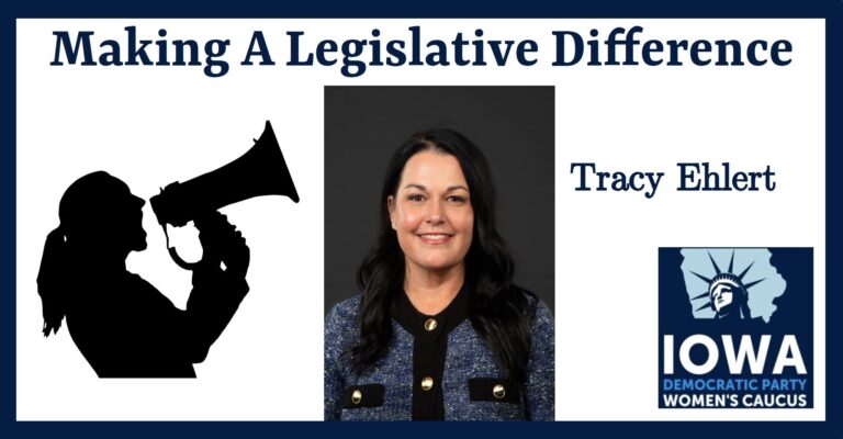 A presentation by Tracy Ehlert, a Democratic Representative now serving her 4th term in the Iowa House of Representatives. Tracy is from Cedar Rapids and provided information about GETTING ISSUES INTRODUCED AS LEGISLATION.